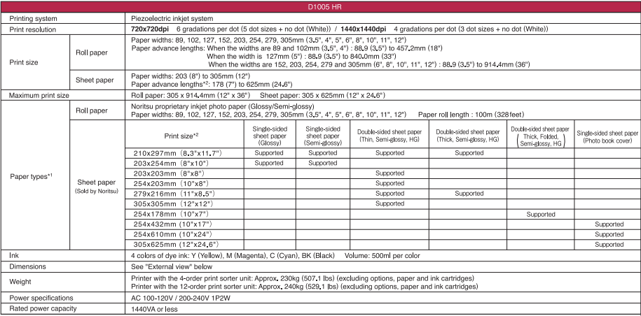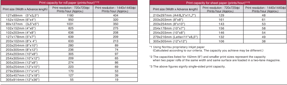 Sheet Paper 8"(203×254mm) 143prints/hr 53prints/hr